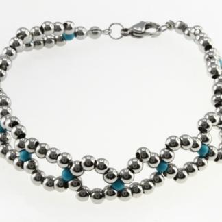 STAINLESS STEEL BRACELET WITH STEEL BALLS AND TURQUOISE STONE
