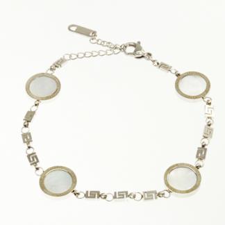 STAINLESS STEEL GRECA PATYTRN CHAIN & SHELL BRACELET ALL IN S/S COLOR