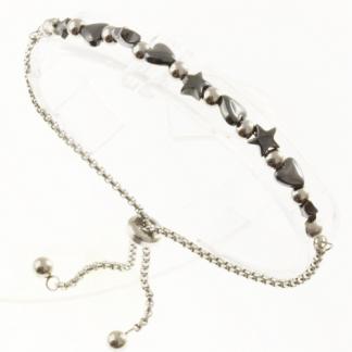STAINLESS STEEL ADJUSTABLE BRACELET WITH STEEL AND HEMATITE BEADS