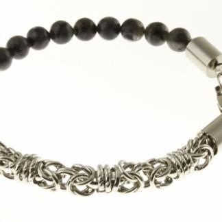 STAINLESS STEEL BLACK BEADS & CHAIN BRACELET ALL IN S/S COLOR