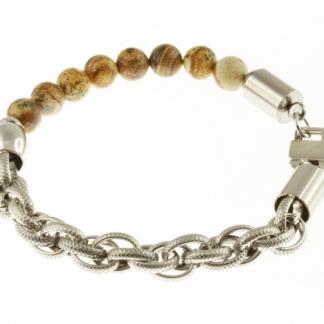 STAINLESS STEEL BROWN STONES BEADS & CHAIN BRACELET ALL IN S/S COLOR