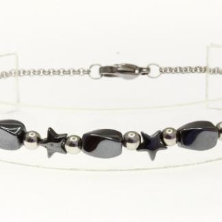 STAINLESS STEEL STEEL AND HEMATITE BEADS BRACELET ALL IN S/S COLOR