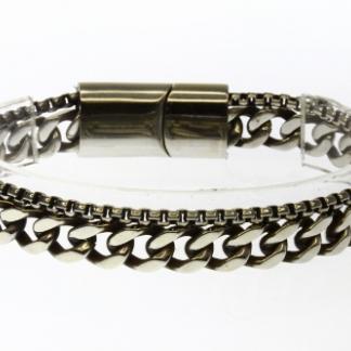 STAINLESS STEEL DOUBLE CHAIN MEN BRACELET LOCK WITH CNC SETTING ALL IN S/S COLOR