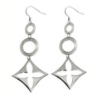 STAINLESS STEEL EARRING IN SQUARE SHAPE WITH FLOWER PATTERN & 2 CIRCLE ALL IN S/S COLOR