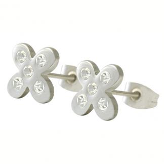 STAINLESS STEEL EARRING IN FLOWER SHAPE WITH CZ ALL IN S/S COLOR