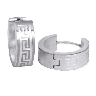 STAINLESS STEEL HUGGIE EARRING IN ROUND SHAPE POLISHED AND SANDBLAST WITH S PATTERNALL IN S/S COLOR