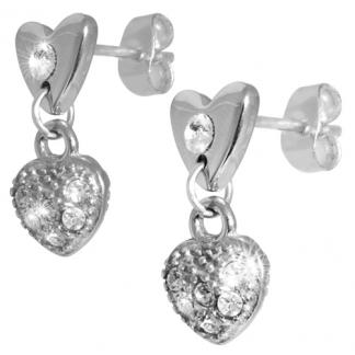 STAINLESS STEEL EARRING IN HEART SHAPE WITH CZ ALL IN S/S COLOR