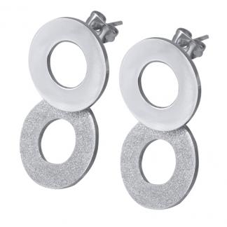 STAINLESS STEEL EARRING IN 2PCS OF CIRCLE SHAPE IN ALL S/S COLOR 1 CIRCLE IN SANDBLAST (LIKE SE795)