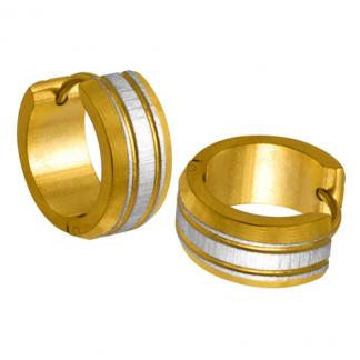 STAINLESS STEEL HUGGIE EARRING POLISH & SATIN IN IPG TWO TONE