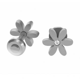 STAINLESS STEEL BABY EARRINGS ALL IN S/S COLOR IN FLOWER SHAPE WITH 1 CZ