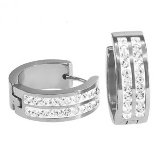 STAINLESS STEEL EARRING IN ROUND SHAPE WITH 2 LINE CZ