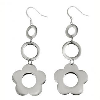 STAINLESS STEEL EARRING IN FLOWER SHAPE WITH 2 CIRCLE ALL IN S/S COLOR