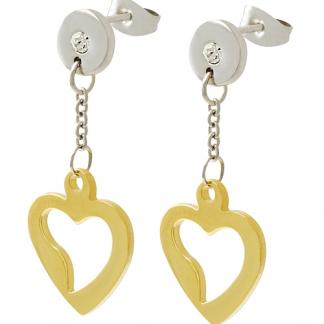 STAINLESS STEEL EARRING IN HEART SHAPE WITH CZ IN IPG TWO TONES