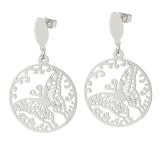 STAINLESS STEEL EARRING IN ROUND SHAPE AND BUTTERFLY PATTERN ALL IN S/S COLOR