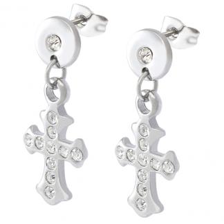 STAINLESS STEEL EARRING IN CROSS SHAPE WITH CZ ALL IN S/S COLOR