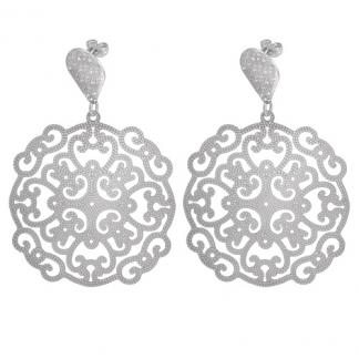 STAINLESS STEEL EARRING IN ROUND WITH HEART SHAPE ALL IN S/S COLOR