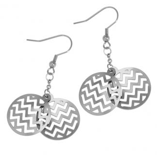 STAINLESS STEEL EARRING IN ROUND SHAPE WITH CUTOUT PATTERN WITH ZIGZAG STRIPPED PATTERN ( 2 layers) ALL INS/SCOLOR