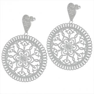 STAINLESS STEEL EARRING IN ROUND SHAPE WITH FLOWER PATTERN ALL IN S/S COLOR