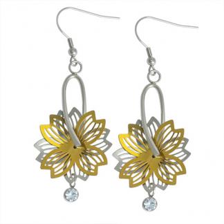 STAINLESS STEEL EARRING IN FLOWER SHAPE WITH CZ ALL IN IPG COLOR