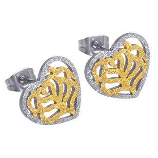 STAINLESS STEEL EARRING WITH HEART SHAPE WITH SANDBLAST IN IPG TWO TONE