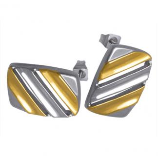 STAINLESS STEEL STUD EARRING IN RECTANGULAR SHAPE WITH STRIP PATTERN IN IPG TWO TONE [CASTED ITEM]
