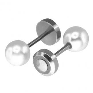 STAINLESS STEEL EARRINGS IN ROUND SHAPE SYENTHEIC PEARL