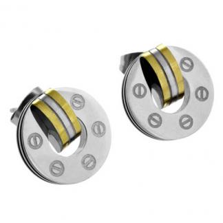 STAINLESS STEEL EARRINGS IN CIRCLE SHAPE WITH SCREW PATTERN N IPG 2 TONES