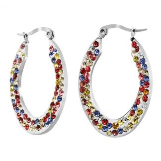 STAINLESS STEEL EARRING IN OVAL SHAPE WITH 2 LINES DIFERENT COLOR CZ ALL IN SS COLOR