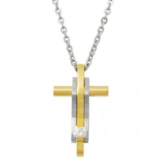Stainless Steel Necklace With IPG two tone cross with cz