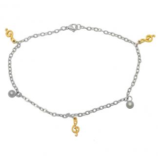 Stainless Steel Necklace 3 IPG Hanging Charms in Treble Clef Shape and 2 Beads