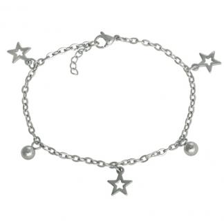 Stainless Steel Necklace In steel color with 2 beads and 3 star charms