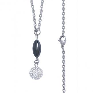 STAINLESS STEEL NECKLACE WITH 1 CZ BALL AND STAINLESS STEEL