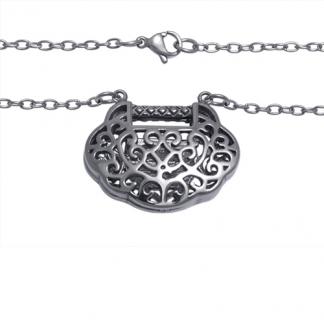 STAINLESS STEEL PENDANT NECKLACE WITH HANDBAG SHAPE PENDANT WITH DELICATE PATTERN