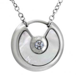 STAINLESS STEEL NECKLACE WITH CIRCLE PENDANT WITH WHITE/BLACK ENAMEL WITH 1 CZ ALL IN S/S COLOR
