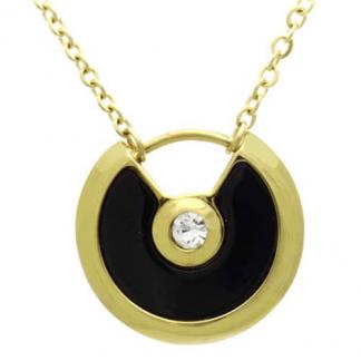 STAINLESS STEEL NECKLACE WITH CIRCLE PENDANT WITH WHITE/BLACK ENAMEL WITH 1 CZ ALL IN IPG COLOR