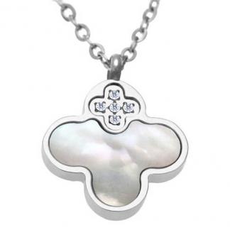 STAINLESS STEEL NECKLACE WITH FLOWER PENDANT WITH SHELL & CZ