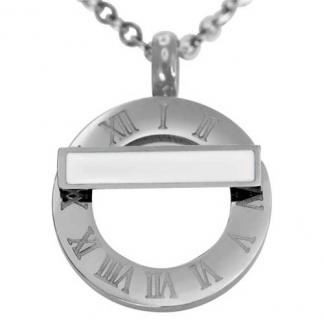 STAINLESS STEEL NECKLACE WITH CIRCLE PENDANT WITH ROMAN NUMBERS WITH WHITE ENAMEL IN S/S COLOR (Set with SE1392)