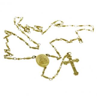 STAINLESS STEEL ROSARY NECKLACE WITH IPG COLOR WITH CROSS PENDANT WITH OVAL PENDANT IN IPG COLOR |