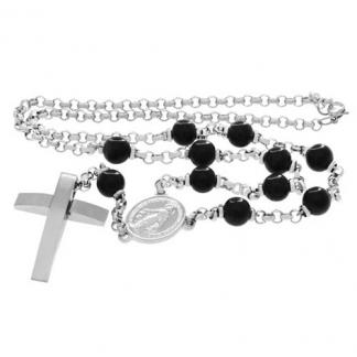 | STAINLESS STEEL NECKLACE IN S/S WITH BLACK BEADS WITH CROSS PENDANT WITH OVAL PENDANT WITH GUADALUPE |