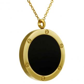 STAINLESS STEEL NECKLACE WITH CIRCLE PENDANT WITH ROMAN NUMBERS AND BLACK ENAMEL IN IPG COLOR