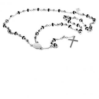 STAINLESS STEEL ROSARY NECKLACE WITH CROSS IN TWO TONE S/S COLOR & BLACK.