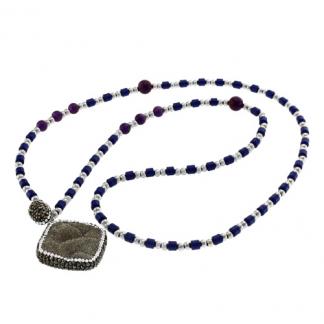 STAINLESS STEEL NECKLACE IN DARK BLUE WITH A STONE AND CRYSTAL BLACK Y WHITE.