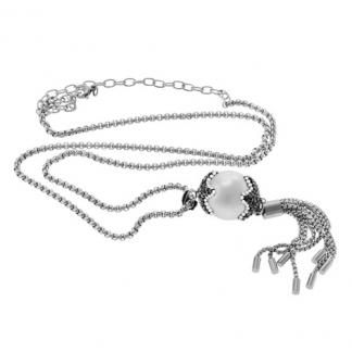 STAINLESS STEEL NECKLACE WITH THIN CHAIN IN CASCADE IN S/S COLOR AND A PEARL WHITE.