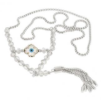 STAINLESS STEEL CHIAN WITH GREY CRYSTAL STONE & STEEL BALL / WITH ONE FLOWER SHELL