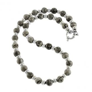 STAINLESS STEEL NECKLACE WITH THE PICTURE STONE AND STEEL BALLS