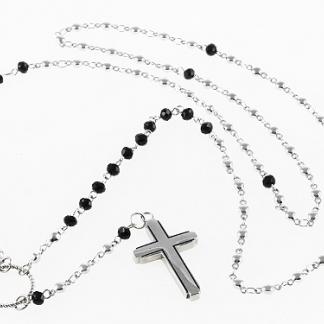 STAINLESS STEEL ROSARY CHAIN WITH BLACK CRYSTAL