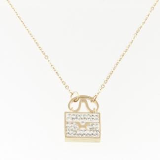 STAINLESS STEEL NECKLACE WITH A PENDANT WITH WHITE CRYSTALS