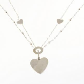 STAINLESS STEEL DOUBLE CHAIN WITH STILL BEADS AND HEART PENDANT ALL IN S/S COLOR