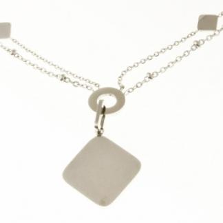 STAINLESS STEEL DOUBLE CHAIN WITH STILL BEADS AND ROMBO PENDANT ALL IN S/S COLOR
