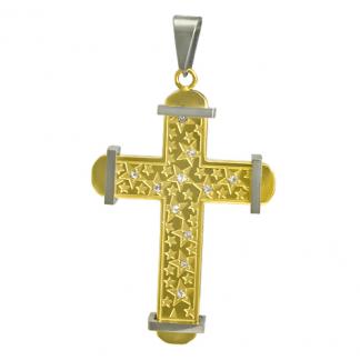 STAINLESS STEEL PENDANT IPG two tone In Cross Shape With CZ